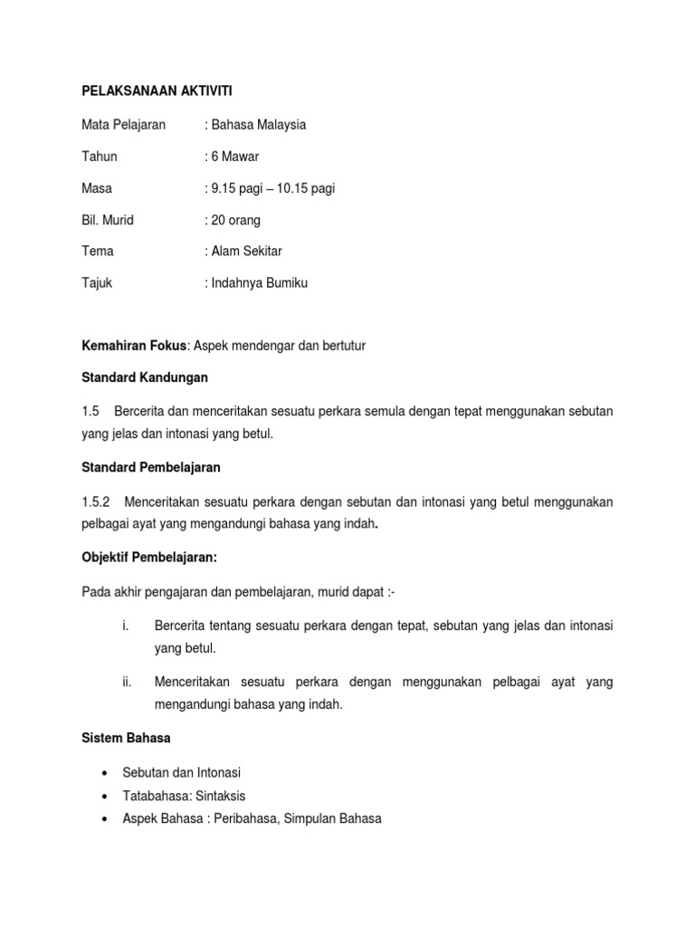 Contoh Modul Pengajaran Kemahiran Mendengar dan Bertutur Tahun 1 was published by MyDocSHELVES Integrated Mobile Platform For Electronic Document Management on 2017-01-02. Tarikh masa kelas tema keselamatan tajuk pastikan selamat kemahiran bahasa mendengar dan bertutur Pembelajaran aktiviti online bahasa melayu tahun 6 kssr guru dan murid kongsikan. Standard Kandungan 12 Bertutur untuk menyampaikan maklumat dan idea bagi pelbagai tujuan.